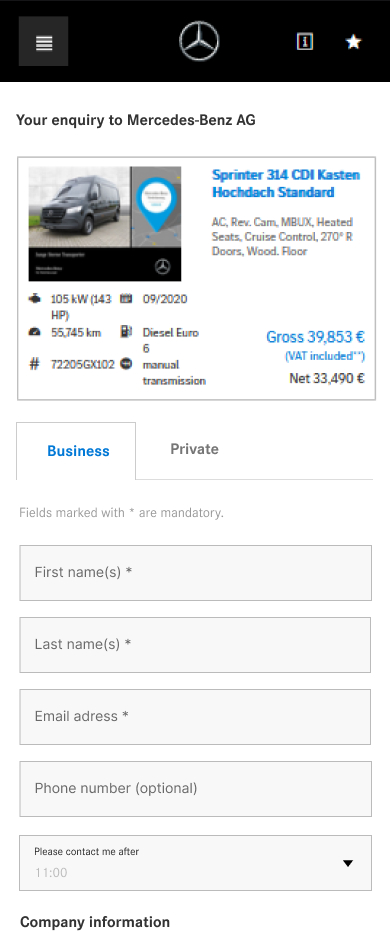 Mercedes-Benz Vans is the Mercedes-Benz AG division for vans of the Mercedes-Benz brand. Besides the day to day van sales and configurations they also have a B2B portal, where business owners can rent, buy and finance vans.