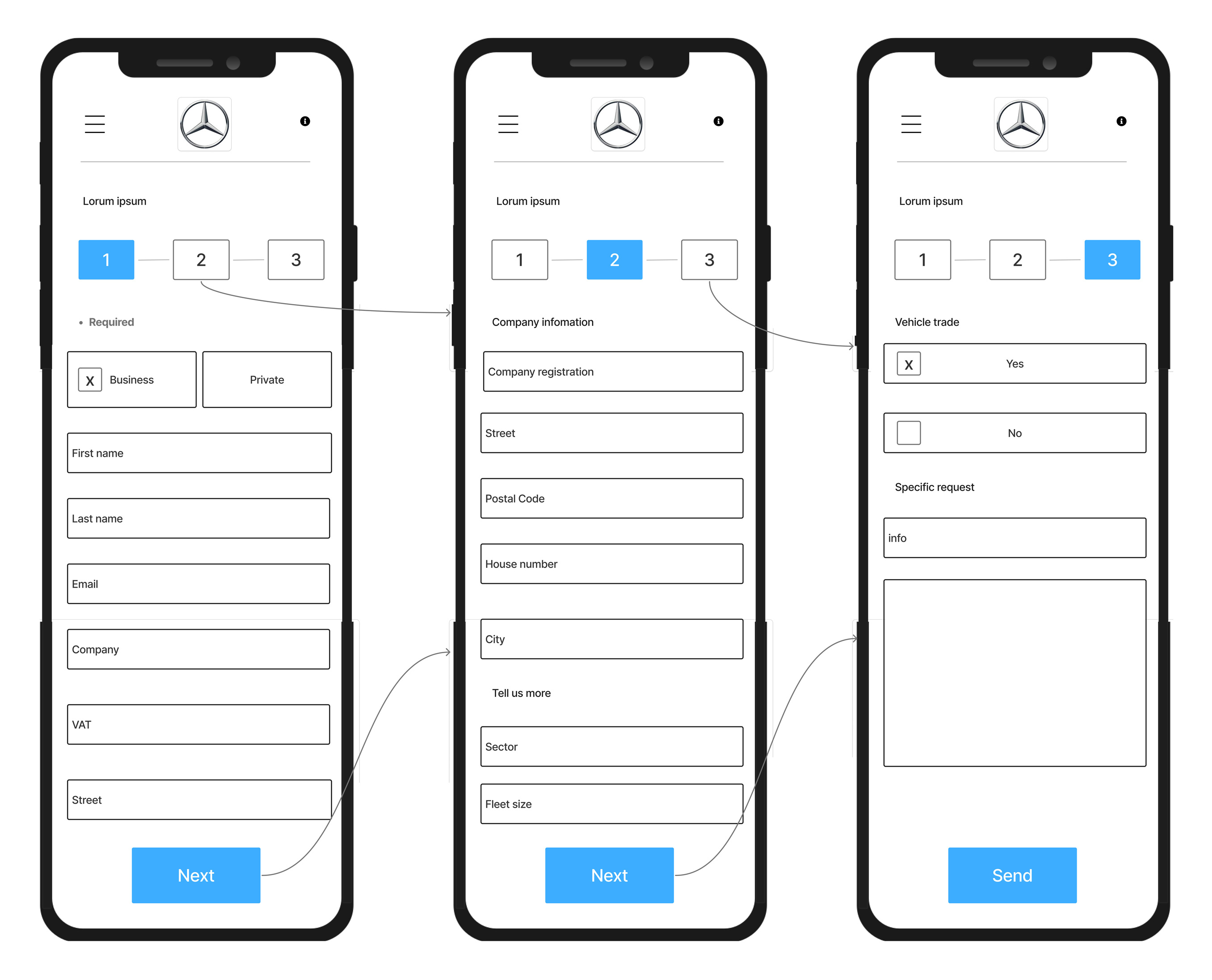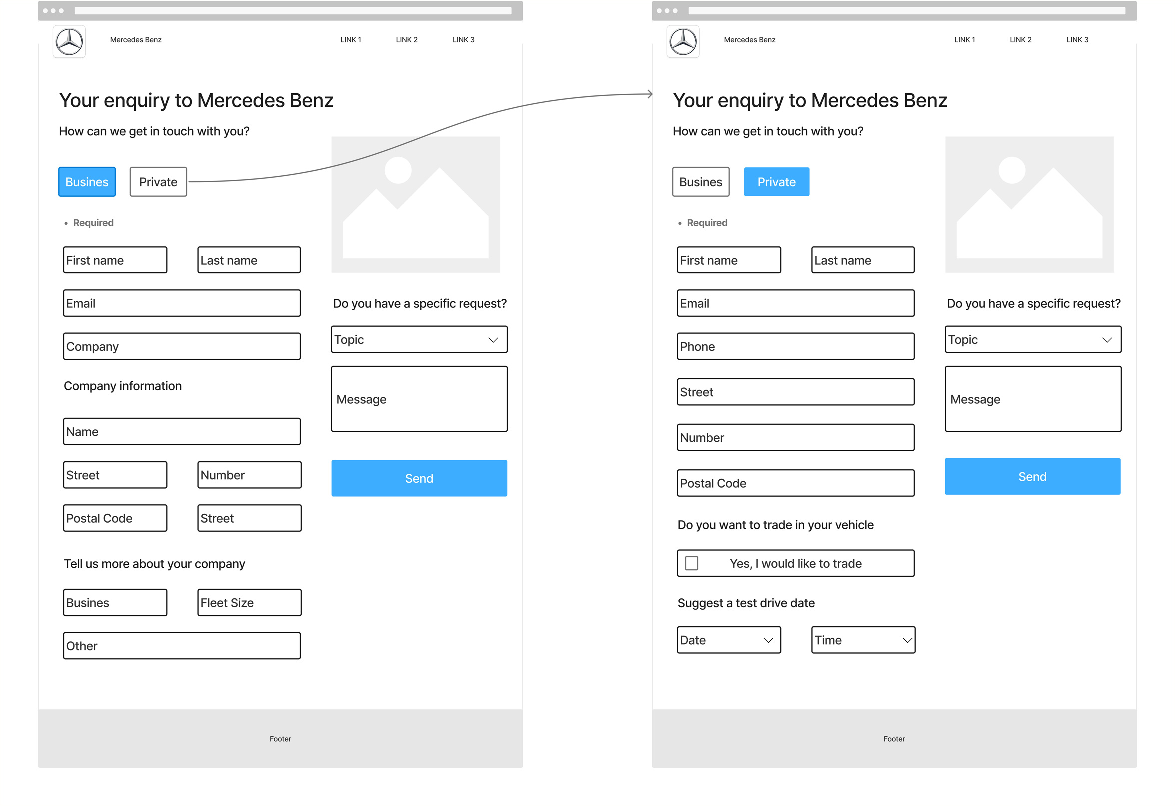 For this project I opted to do a competitor analysis to find ways to deliver a form that can cater to 2 different parties at the same time. After several internal focus groups with the stakeholders and discussing varies results I decided to present 3 variations to the client.