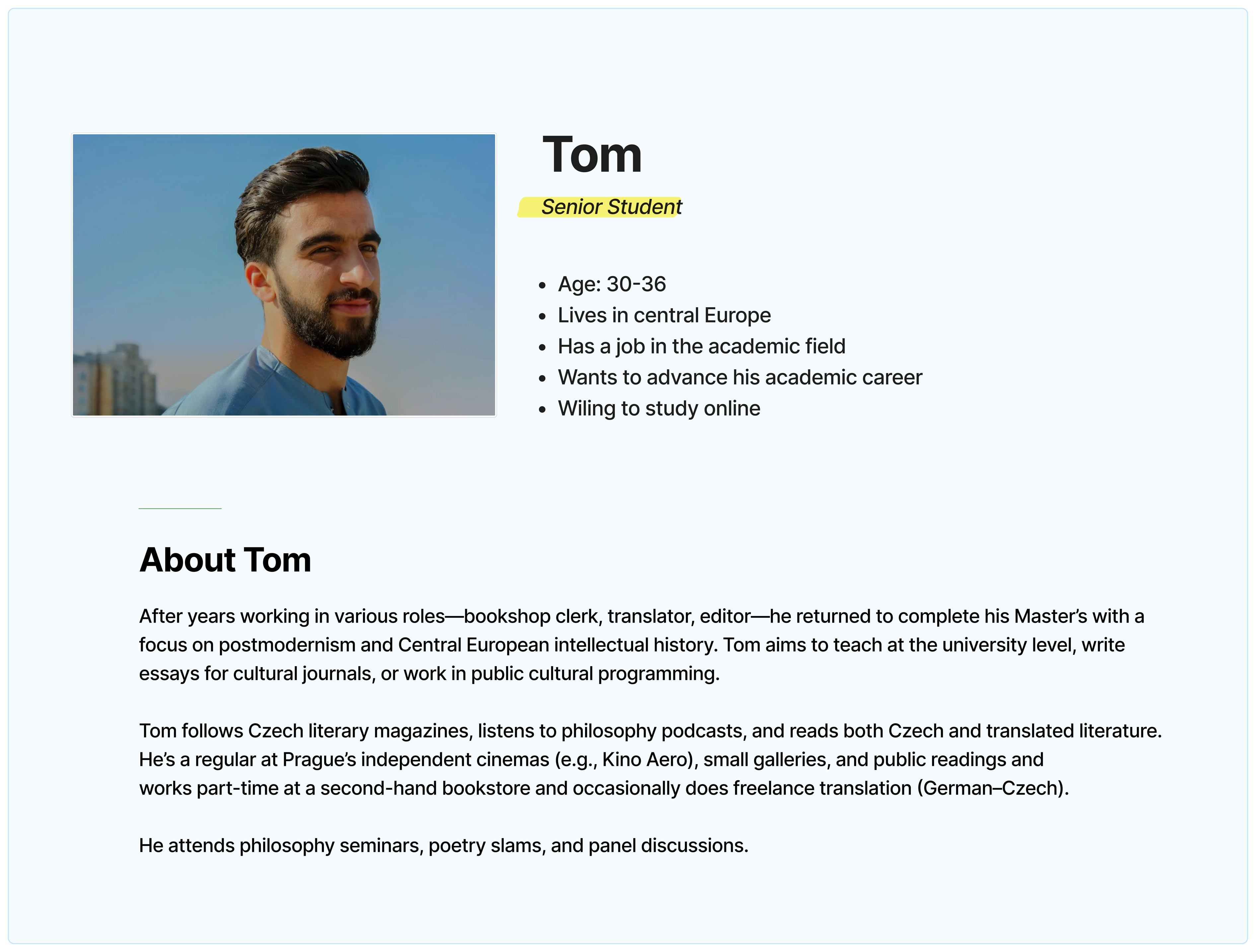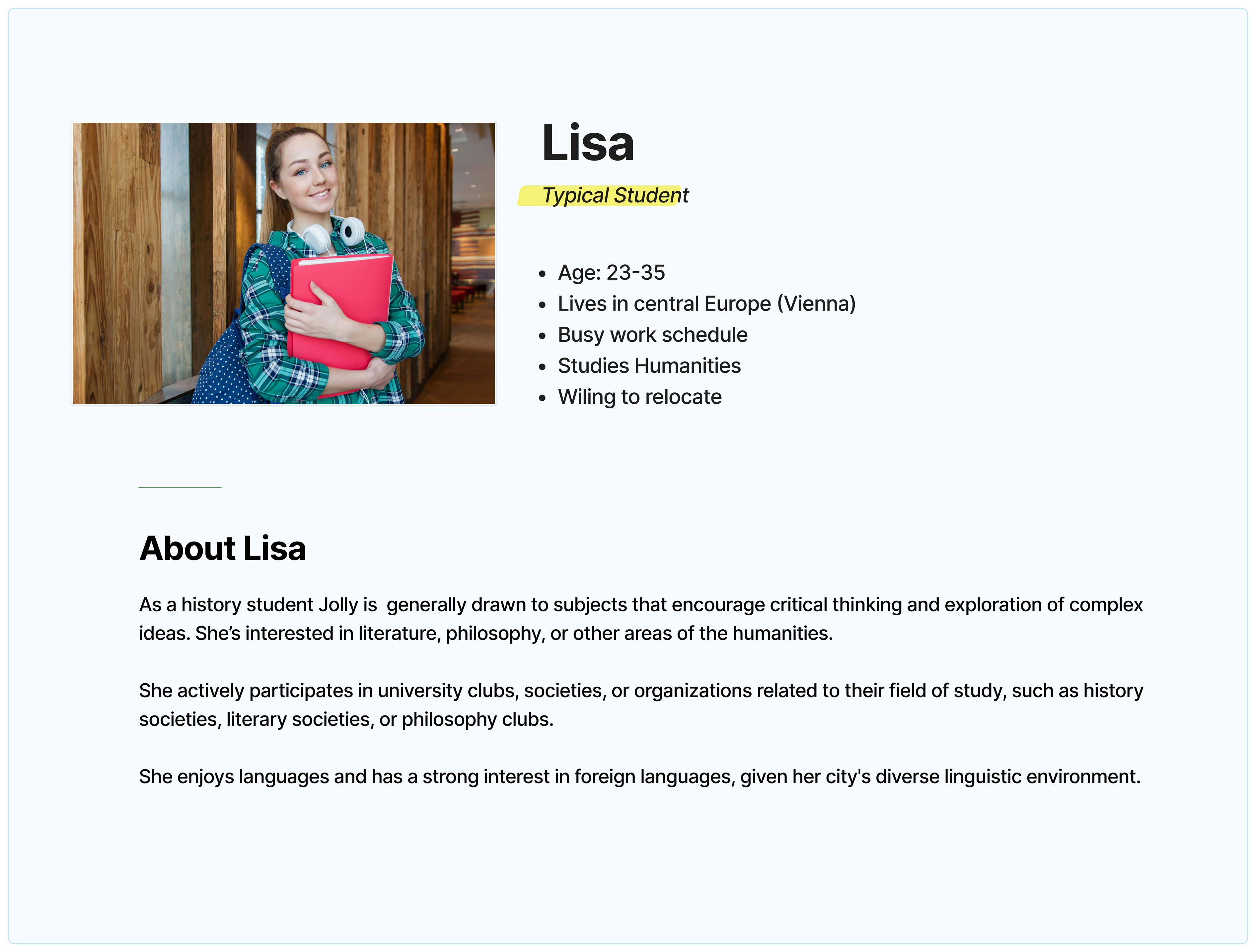 The data I collected from the research helped me create 2 personas embodying 2 different student types in my target user group.
