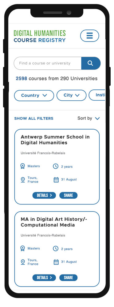 DHCR is a course registry website with the goal of allowing students to find University courses in the Humanities near them. Uniquely focused outside of the classroom, their aim is to become a singular resource enabling students to explore and share their interests with other students, discovering and managing extracurricular activities, and allowing their parents and teachers to communicate non-academic information.