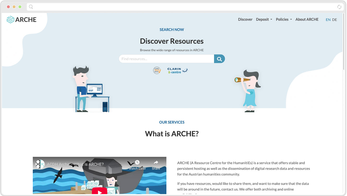 ARCHE (A Resource Centre for the HumanitiEs) is a service that offers stable and persistent hosting as well as the dissemination of digital research data and resources for the Austrian humanities community.